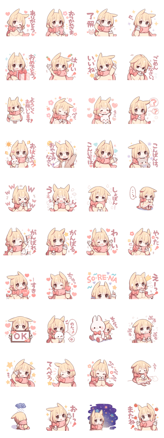うさぎの女の子のスタンプ第六弾です。毎日使えるリアクションや挨拶が沢山入っています。友達や家族、恋人との会話に是非。