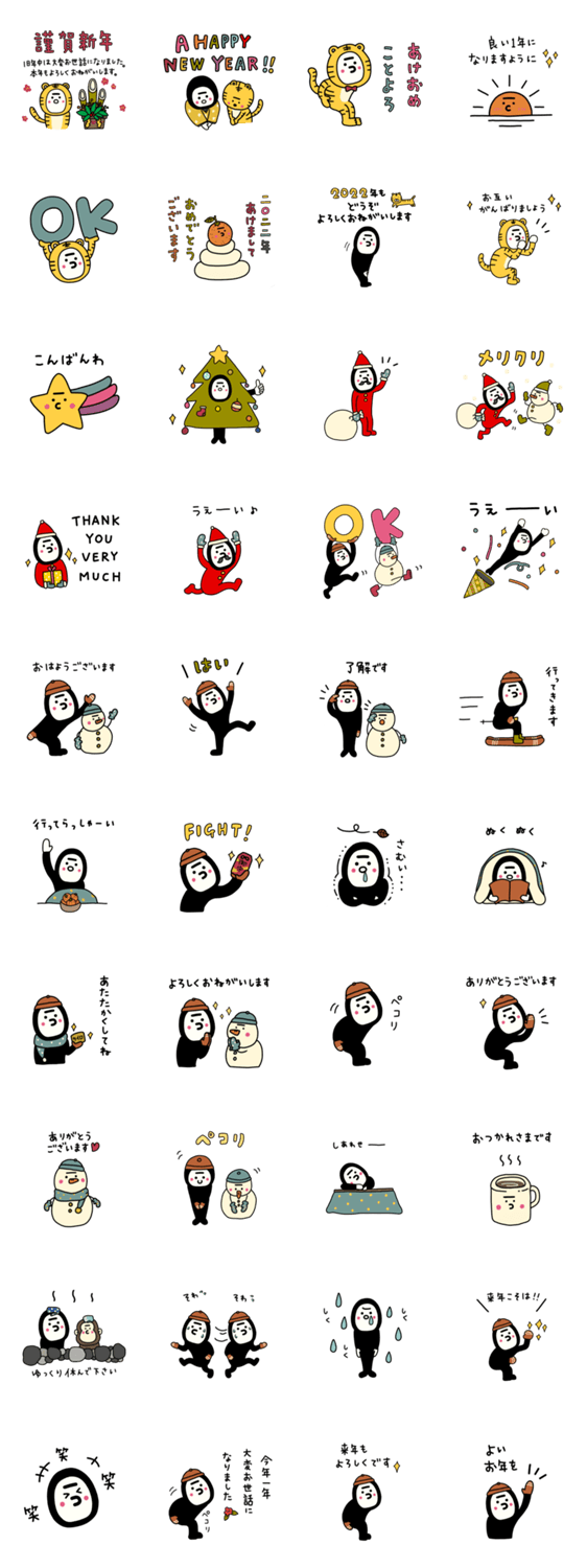 タイツマンの冬スタンプ、クリスマス、年末年始に使える☆