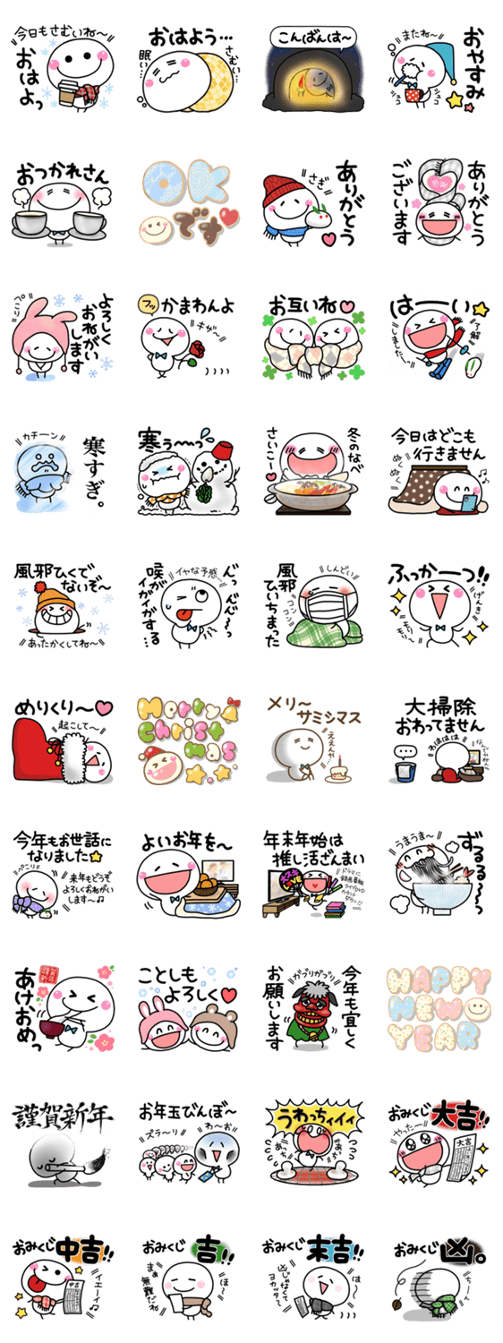 クリスマス・年末年始・お正月など冬に使えるスタンプです。年号や干支無しなので毎年コレで決まりっ♫絵文字シリーズと合わせてさらに可愛い☆