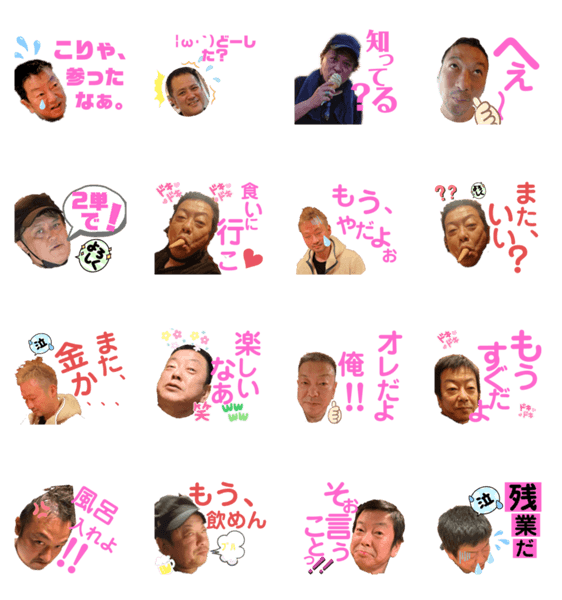 新橋の生きる伝説きっしーと愉快な仲間たちのスタンプです。