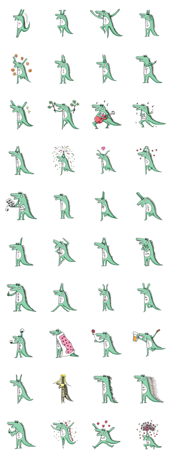 恐竜じゃないよ、ワニゾーだよ。ワニゾーのひとことスタンプ。「きになる」「ココ」、「ココ」「どう?」など、ひとことでも、つなげてもOKなスタンプです。
