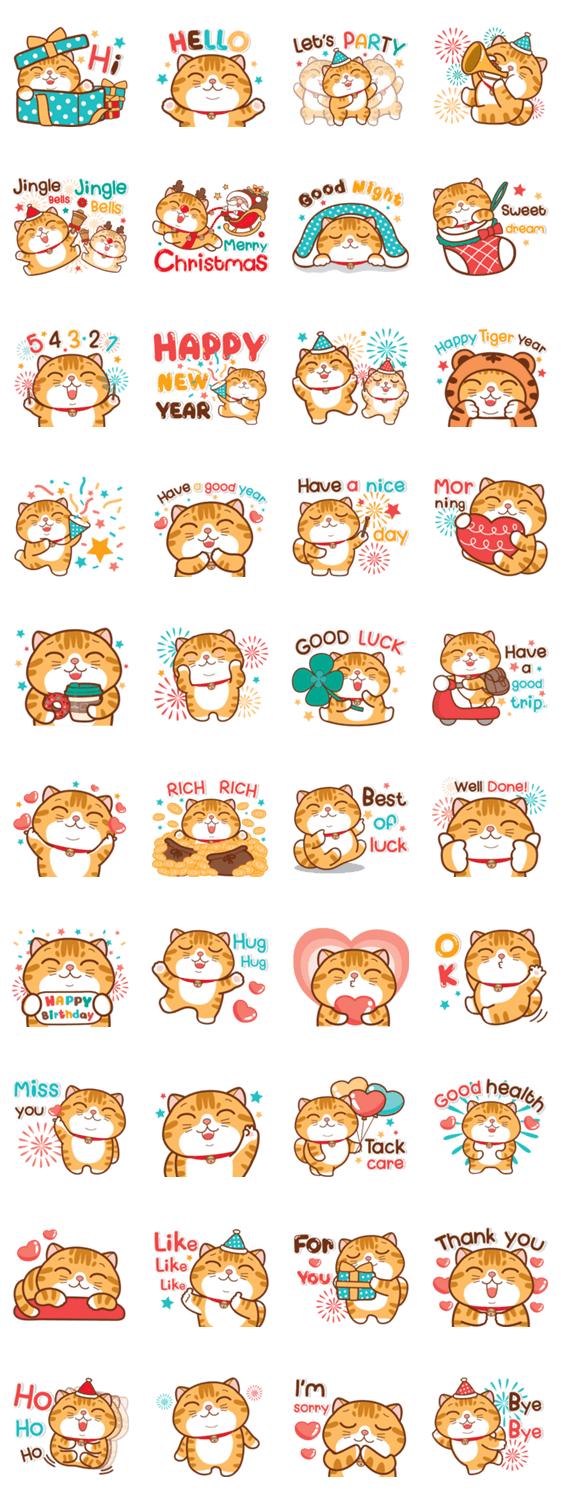 | スタンプ説明 | Tiger Orange Cat : Happy New Year and Merry Christmas |