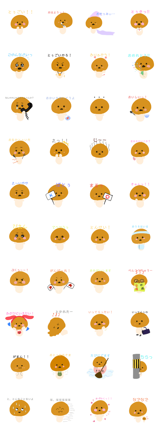 鼻声のきのこ、きのちゃんの毎日使えるスタンプ!! きのちゃんをほんわかトークのお供にどうぞ♬︎♡