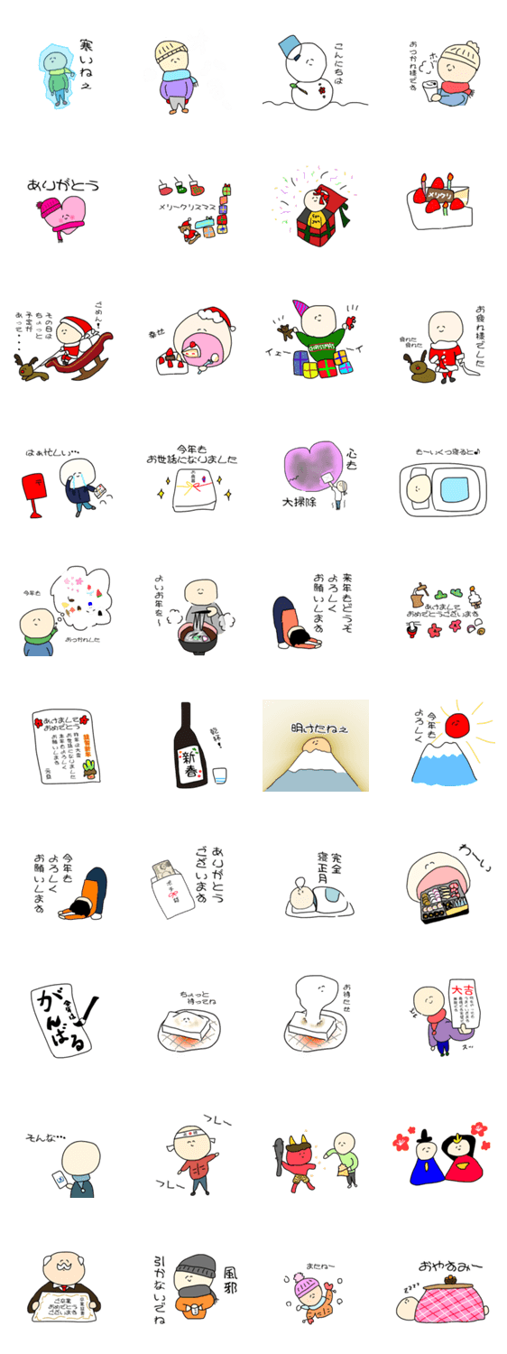 やる気のないゆるゆるなスタンプ冬あんど年末年始⭐︎〜3月までの冬イベントスタンプ付き⭐︎