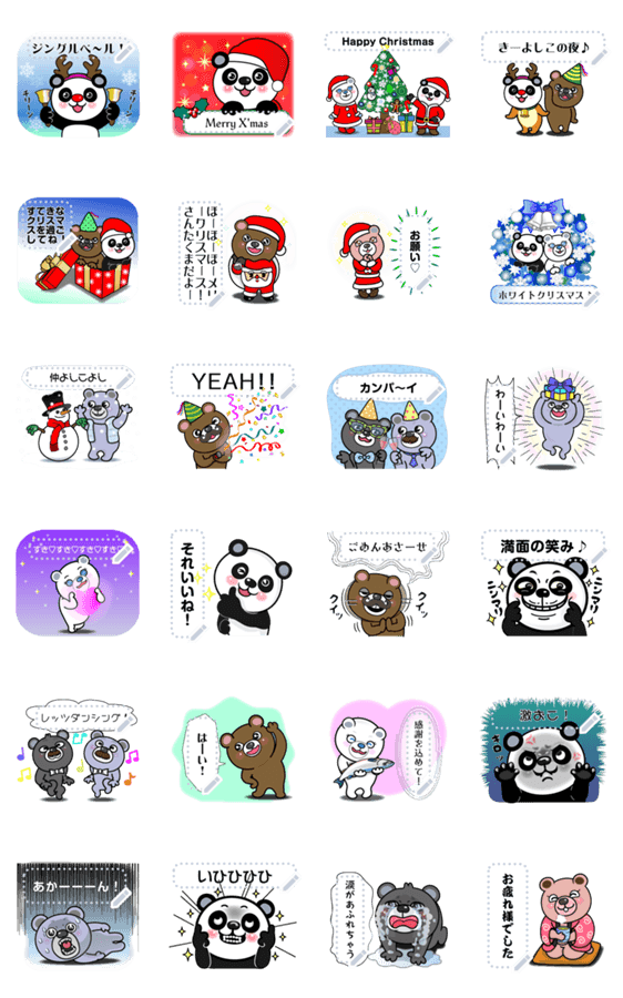 パンダとクマ友のX'masメッセージスタンプ -LINEスタンプマニア