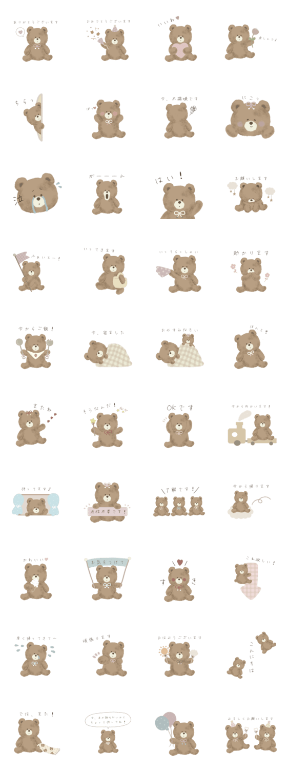 ふわふわなくまさんのスタンプです! 日常で使いやすい言葉や敬語、育児中の方にも使いやすいものも入れています♪