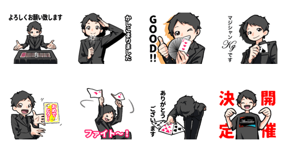どうも、マジシャンKg(ケージー)です!徹底的なこだわりで、使いやすくかわいいスタンプが誕生しました!!ぜひ、これを機にマジックを少しでも好きになってください~!!