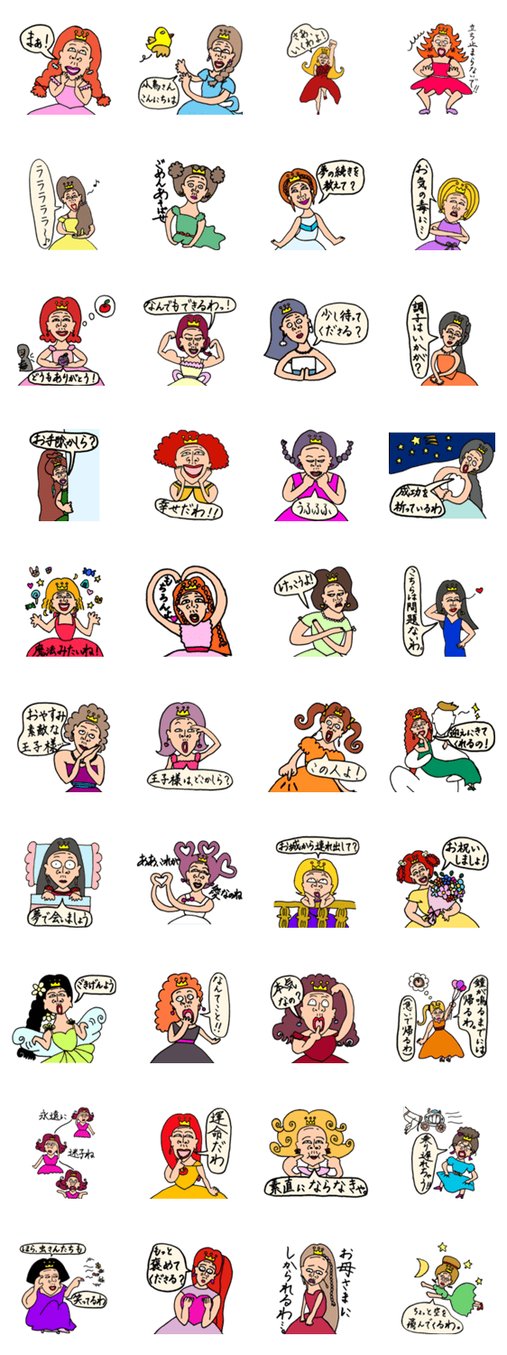 | スタンプ説明 | プリンセスらしい上品さ、可憐さを兼ね備えたおっさん姫。 プリンセスに憧れる方、変化球がほしい方におすすめです☆ |