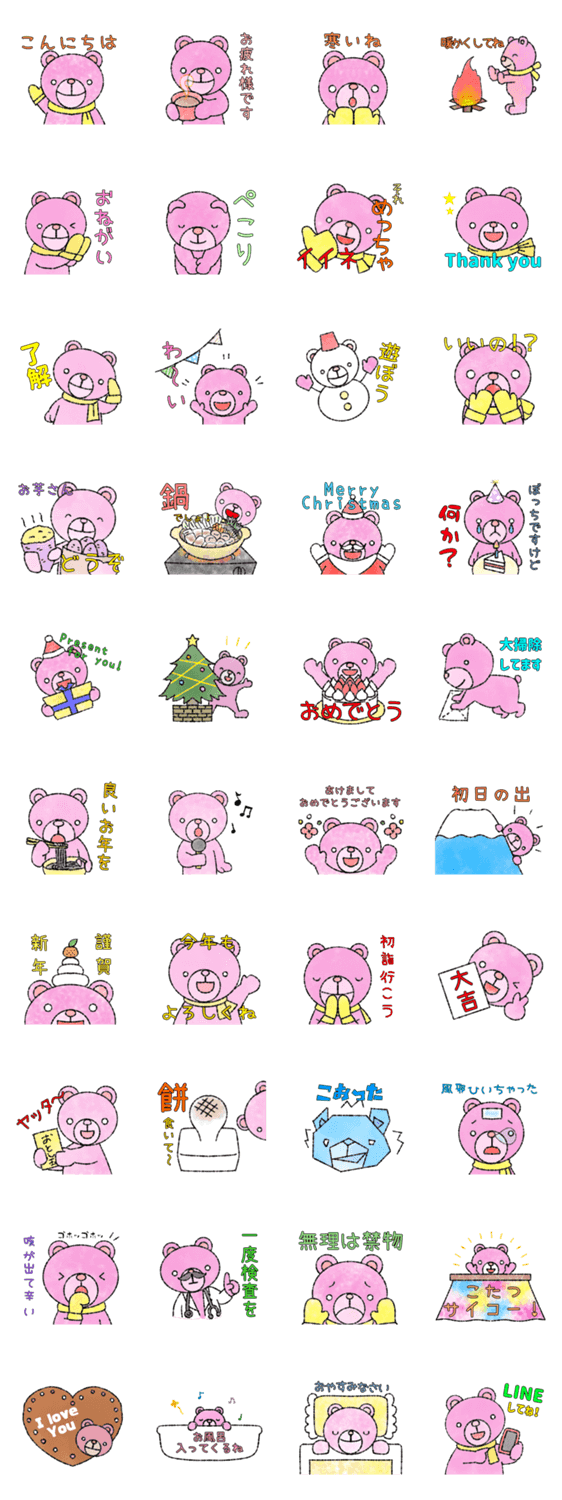 スタンプ説明 オリジナルキャラクターピンくまの冬スタンプです!