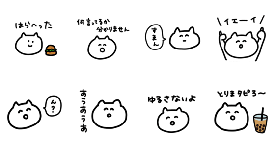 白ネコのあいうえお・・・ってるスタンプ
