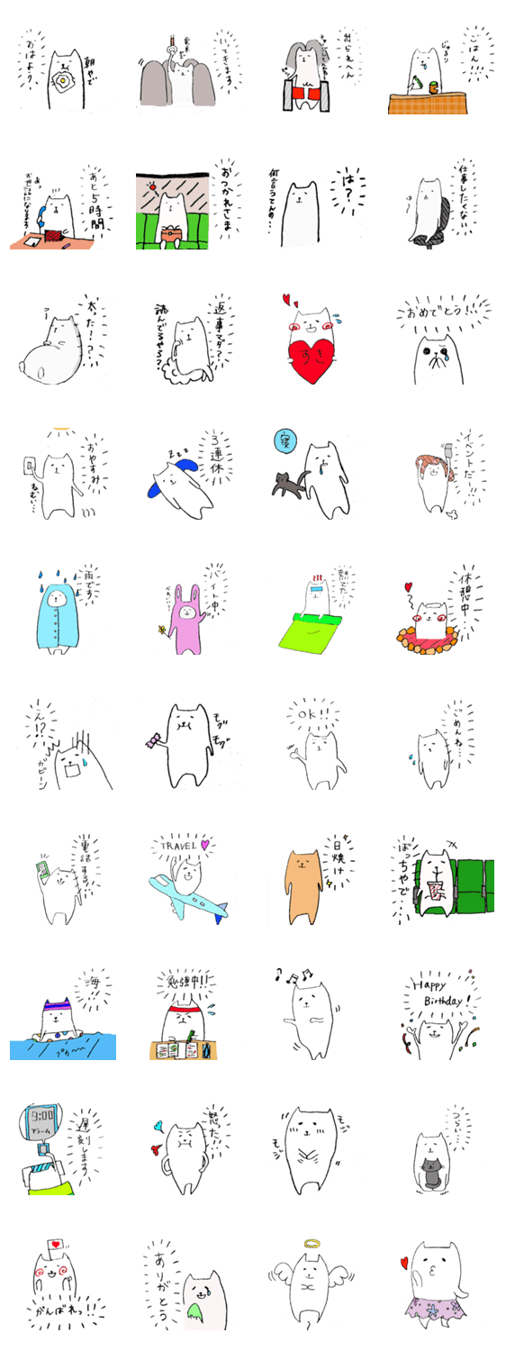 白ネコのあいうえお・・・ってるスタンプ