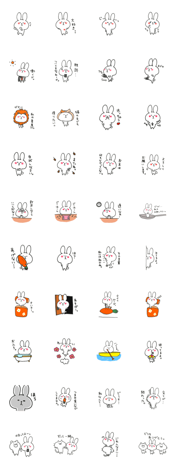 可愛く、かっこよく、時にシュールなうさちゃんだよ。「ねこですけどなにか?」と「僕はクマ。」もちょこっと登場!