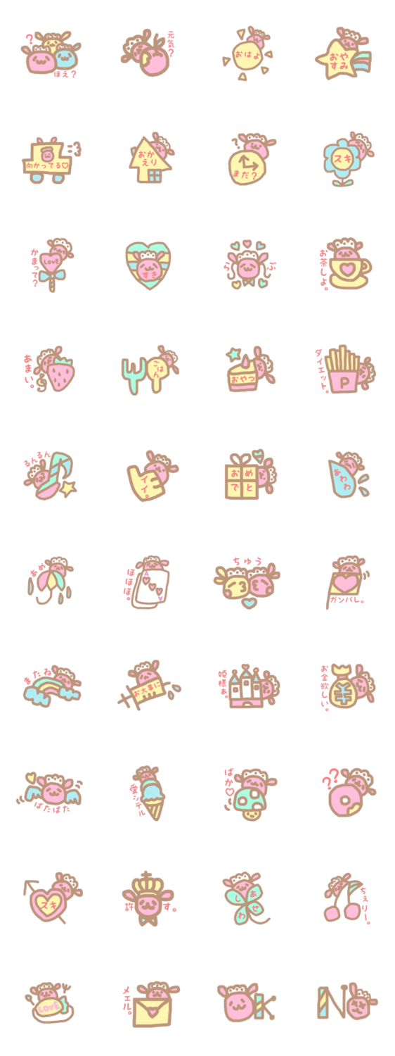 パステルカラーのうさぎメイドのアイシングクッキー風スタンプです♪ゆるっと、ふわふわ。カップル、ロリィタ、メイドさん、アイドルさんみーんなの会話を盛り上げます♡