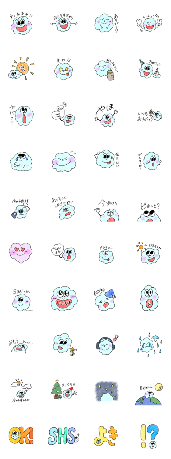 スタンプ説明 僕はお空が大好きマイペースな雲のようせいだよ。