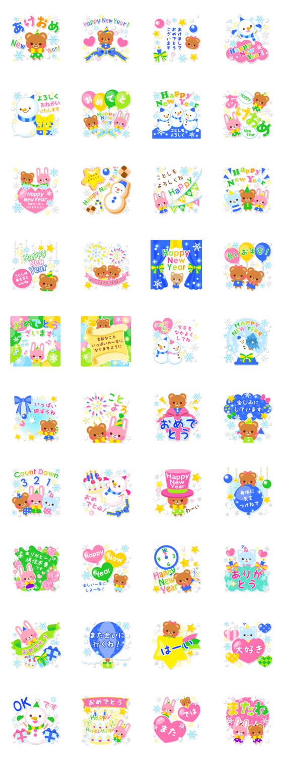 | スタンプ説明 | お正月に使えるかわいい年賀スタンプです。お友達や家族の会話にたくさん使ってね♪ |
