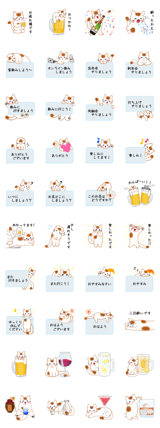 もちもちほっぺのねこスタンプ第6弾!ビール大好き「のんべえにゃんこ」のスタンプです。飲み会などのお誘いの他にも色々なシーンで使えます。