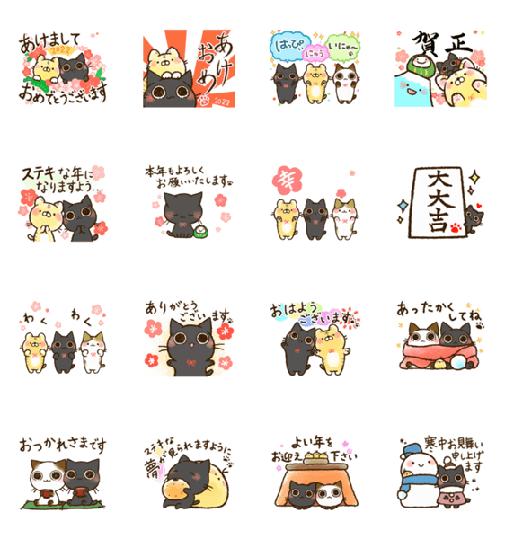 動く♪お正月~トラ猫さんとおはぎさん~ -LINEスタンプマニア