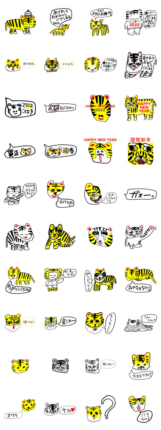 トラ(とら・虎・寅・タイガー)さんのラクガキスタンプです。2022年の干支(十二支)は寅(寅年)なので年末年始・お正月で使えます。省スペーススタンプもあり。油山のトラ。