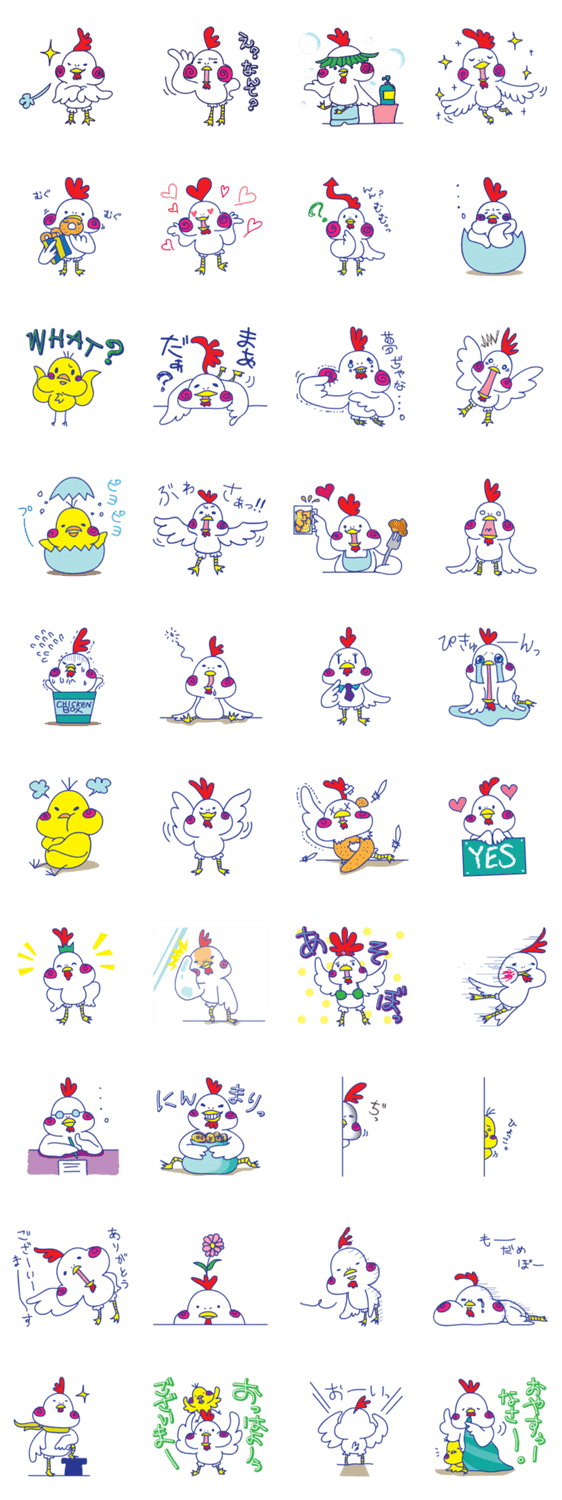 結構身近な存在、鶏のチキートが、LINEスタンプに登場です!ひよこちゃんも引き連れて!いかる!萌える!萎える!しらける!個性はチキン!よろしくお願いします。