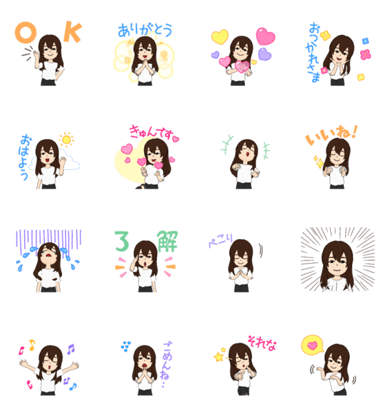ロングヘアな女の子 -LINEスタンプマニア