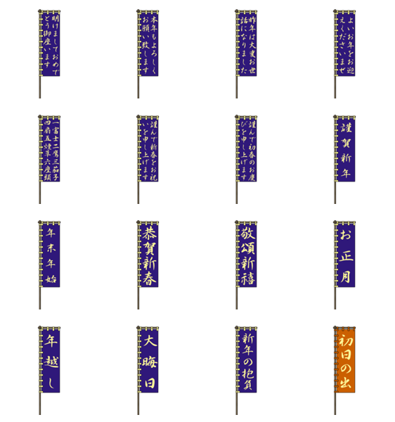 日本の戦国時代の武将の馬印ののぼりをアレンジしました。年末年始バージョンです。 ※このスタンプはトークルームで大きく表示されるBIGスタンプです。