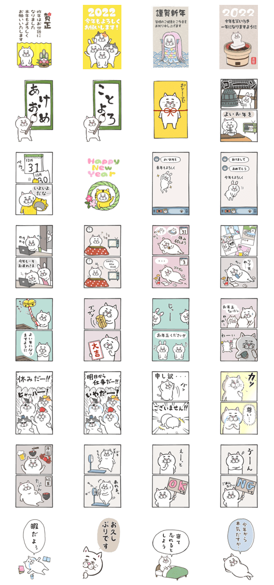 年末年始スタンプが今年はBIGになって登場! 猫たちと一緒に年越ししましょ。 ※このスタンプはトークルームで大きく表示されるBIGスタンプです。