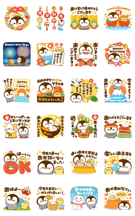 ぺんぺんとぴよこが可愛く飛び出す!!毎年使える年末年始・お正月の挨拶スタンプです♪