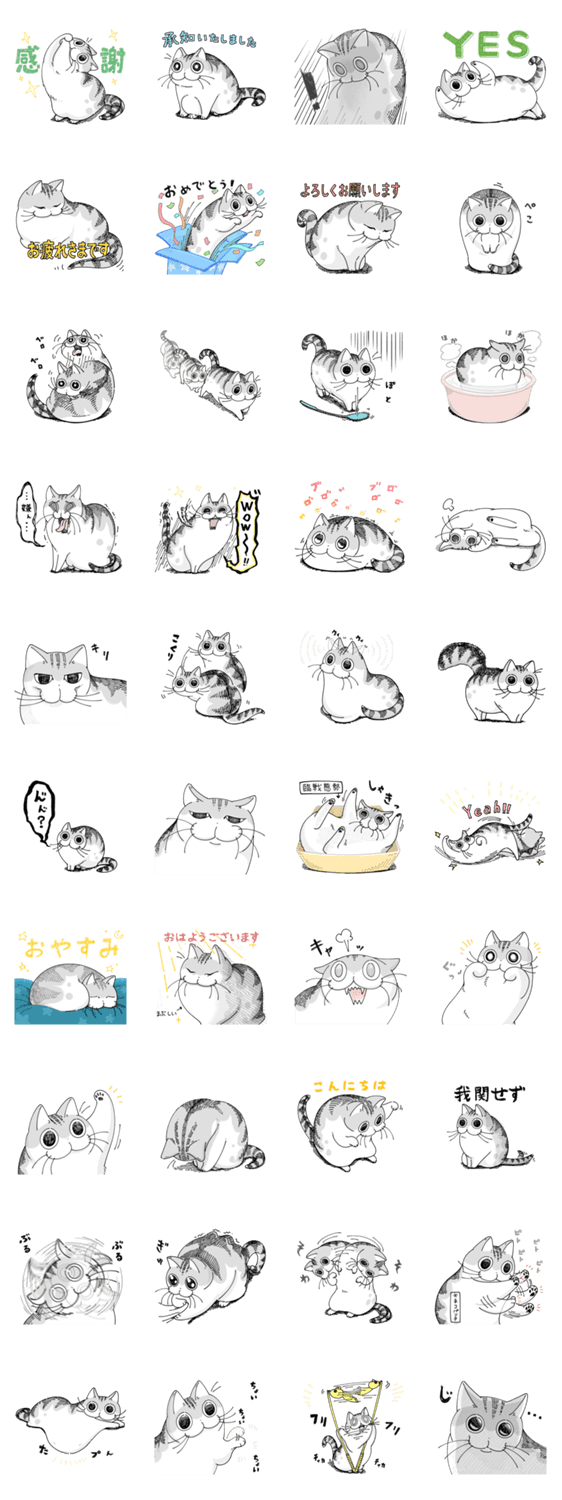 白ネコのあいうえお・・・ってるスタンプ
