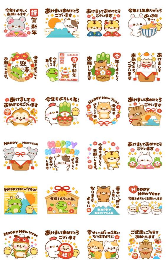 干支キャラが大集合!子・丑・寅・卯・辰・巳・午・未・申・酉・戌・亥 全員揃ってるからずっと使えます♪