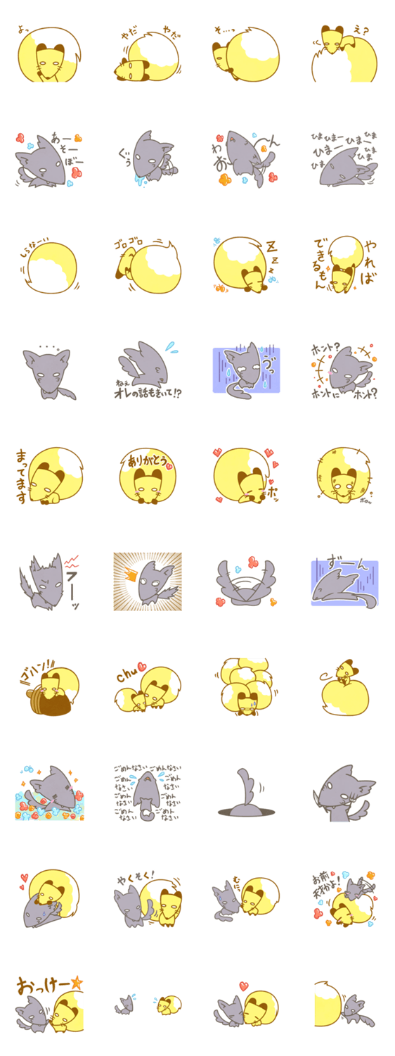 もふもふしっぽのなかまたち。キツネの『ルナール』、オオカミの『ルー』のなかよしスタンプです。