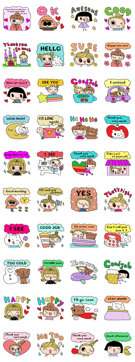 英語 タイ 中国語 韓国 日本語 スタンプ かわいい