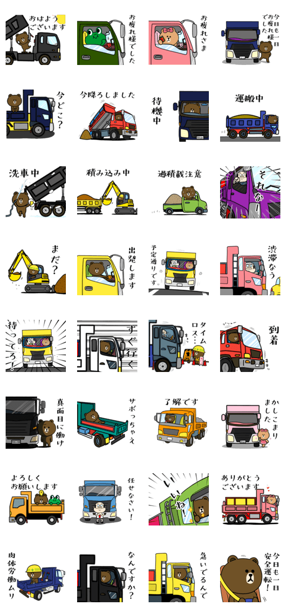 人気のブラウン&フレンズ!仕事/働く/ユンボ/ダンプ/車/トラック/建設/建築/現場/工事/作業/土木/解体/舗装/運搬/輸送/配送/産廃/社長/上司/部下/連絡/挨拶☆ノンノノン作 ※BROWN & FRIENDS をみんなでつくろう!キャンペーン参加スタンプです
