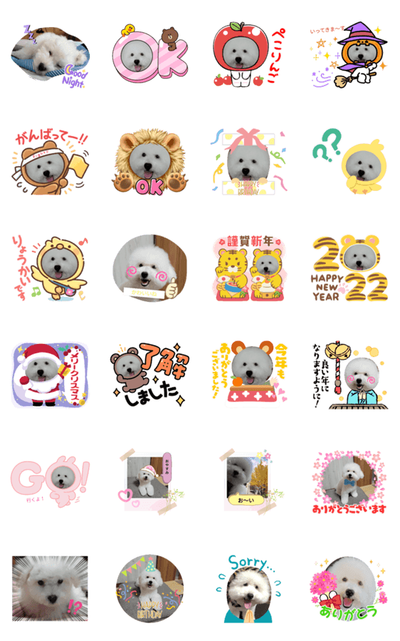 | スタンプ説明 | LINEスタンプメーカーでつくった、ビションフリーゼのスタンプです。 |