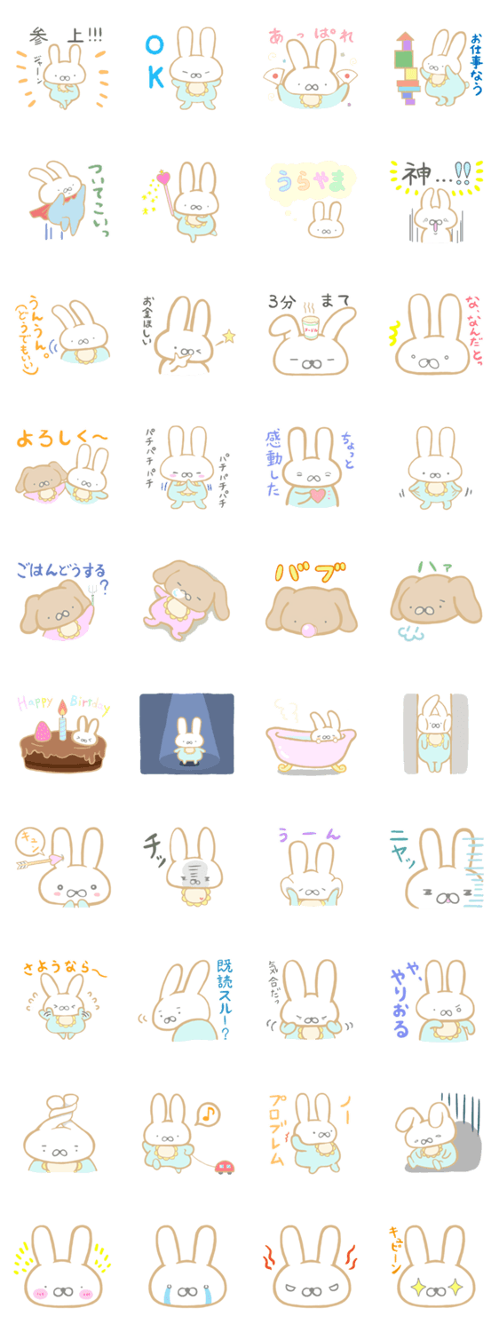 スタンプ説明 パステルカラーのかわいい赤ちゃんうさぎです。