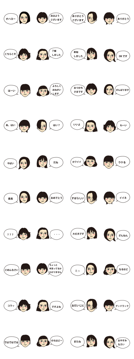 ポーカーフェイスな黒髪女子が話す丁寧敬語スタンプです。