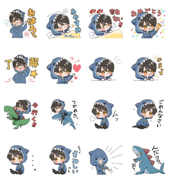 サッメと恐竜がすきな子のゆるいスタンプ、第2弾です!