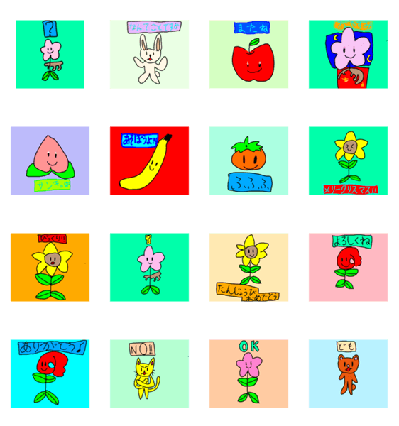 イラストをがんばったスタンプです(小学2年生の娘の渾身のイラストです)