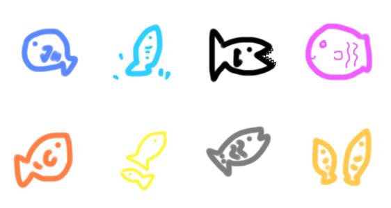 LINEスタンプメーカーで手書きでつくったスタンプです。お魚ちゃんがたくさん飛び跳ねています。