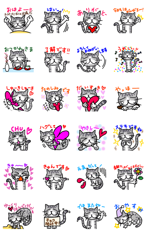 ねこさんが、気持ちを伝えます!彼氏彼女、友達、家族との会話で楽しく使ってください。