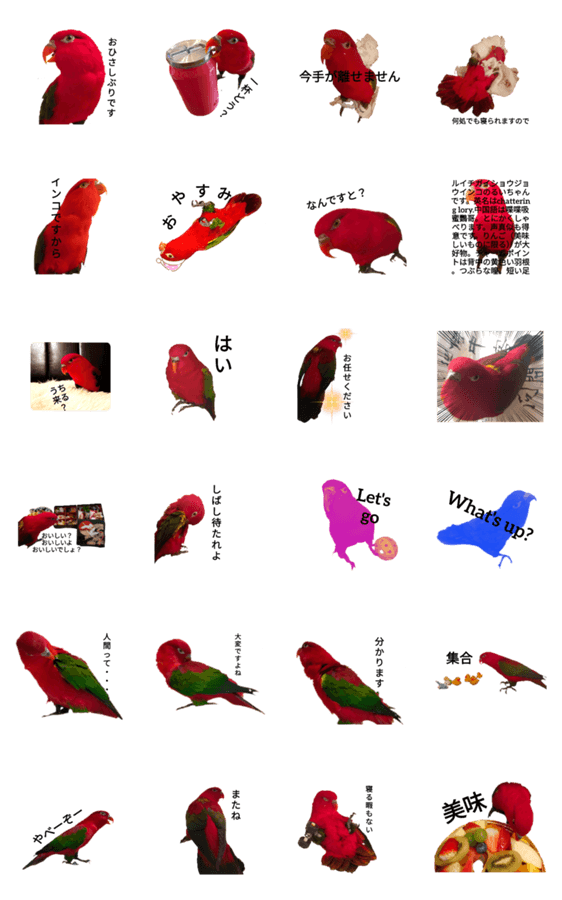 ルイチガイショウジョウインコのるいちゃんのスタンプです。