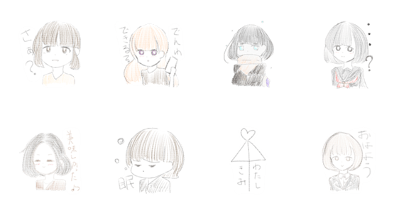 お試しで作りました。鉛筆で書いたような女の子たちです