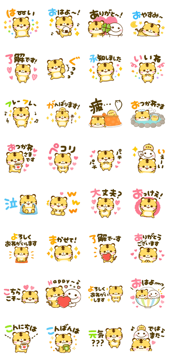 らくがきみたいな棒人間とトラさん♡カラフルで大人可愛いデカ文字スタンプです♪毎日使える言葉がたくさん♪