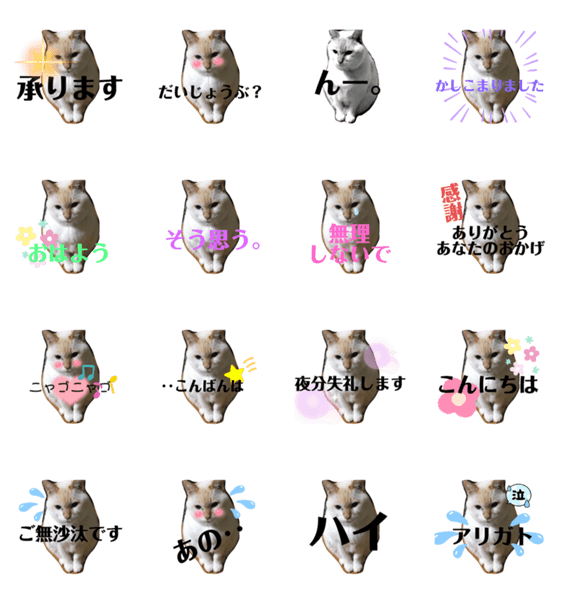 白ネコのあいうえお・・・ってるスタンプ