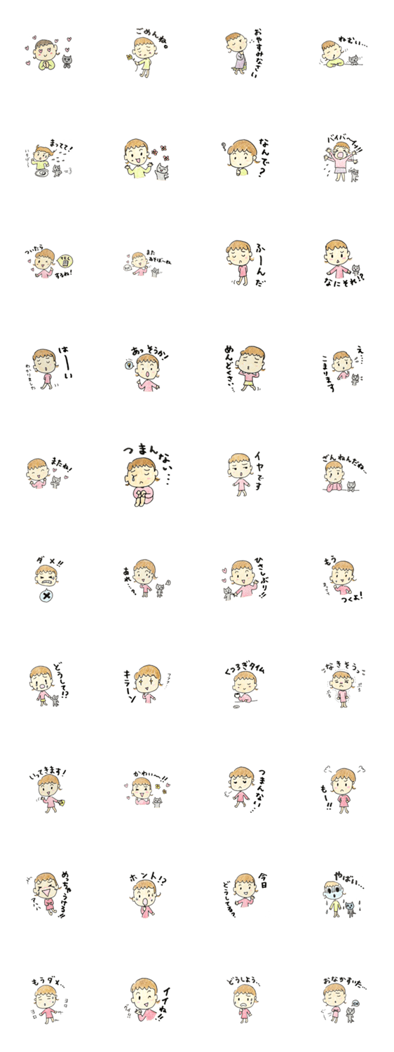 のほほんとしたのんちゃんと、猫のクロちゃんの毎日のちょっとした日常に使えるスタンプです。