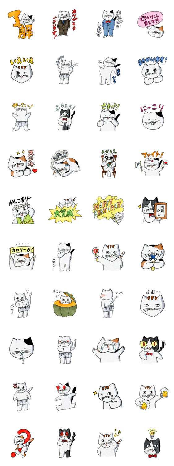 白ネコのあいうえお・・・ってるスタンプ