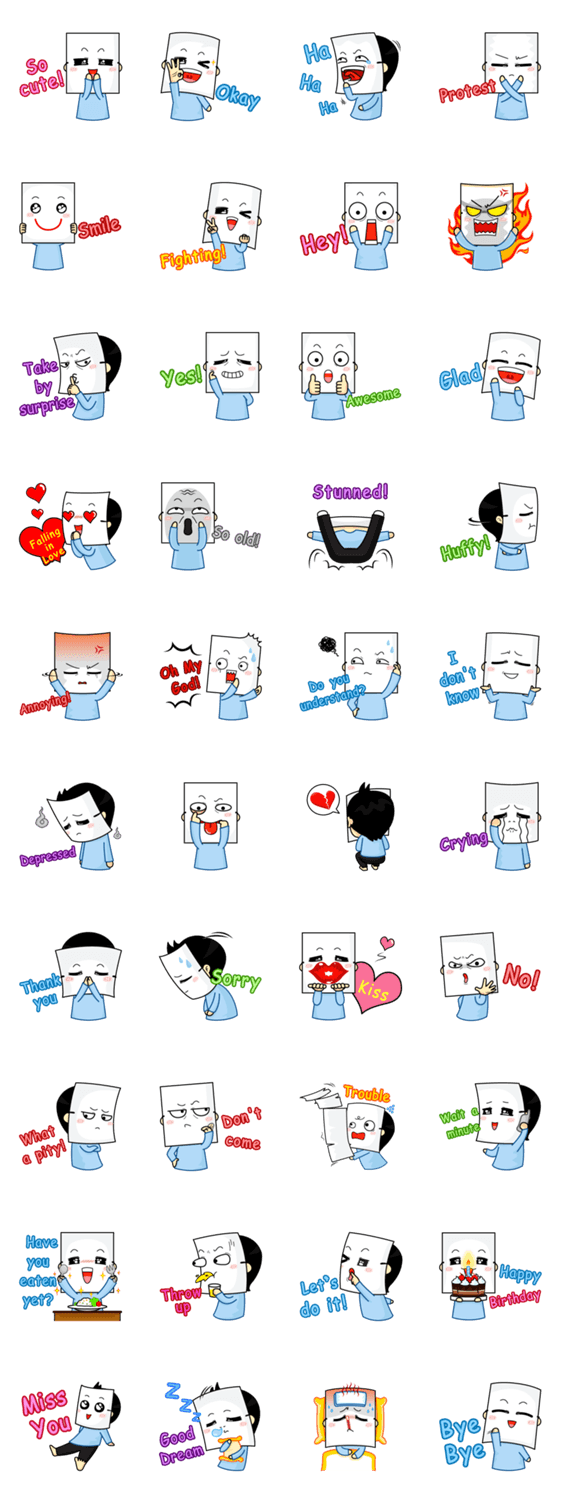 | スタンプ説明 | Sticker Paper mask I do not show Paper eyes and mouth make you look cute and mood Humor Funny. |