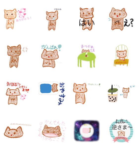 白ネコのあいうえお・・・ってるスタンプ