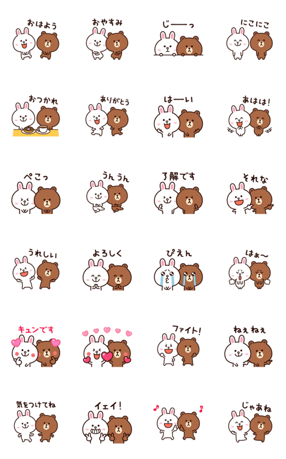 楽しく動いてかわいいブラウン&コニーのアニメーションスタンプ。よく使う言葉を集めた使いやすいスタンプです。 ※BROWN & FRIENDS をみんなでつくろう!キャンペーン参加スタンプです