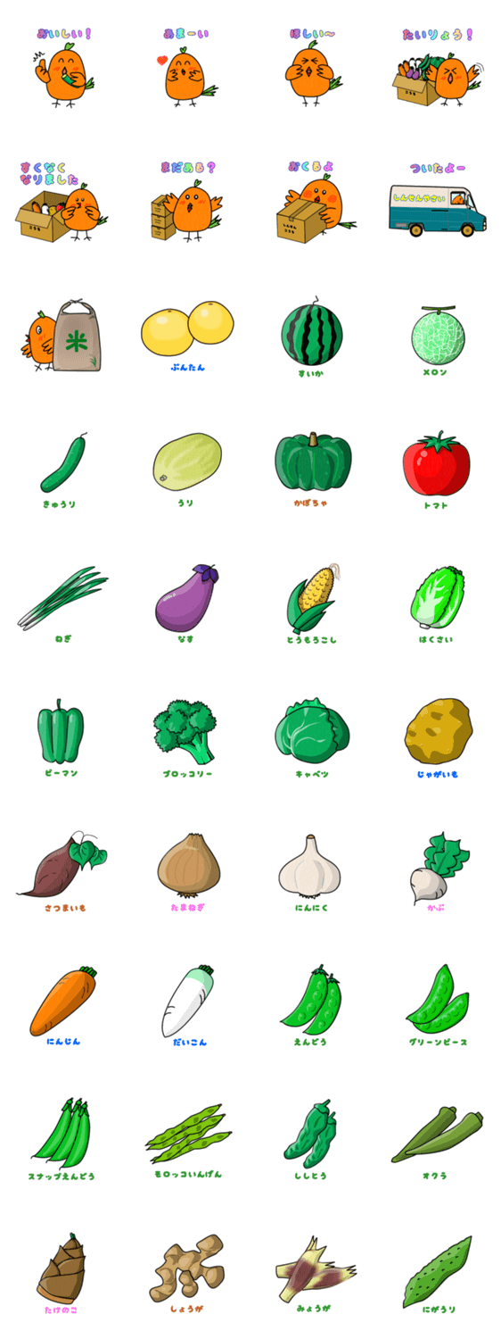 まあるいとりのながちゃんです。 やさいスタンプセットです。