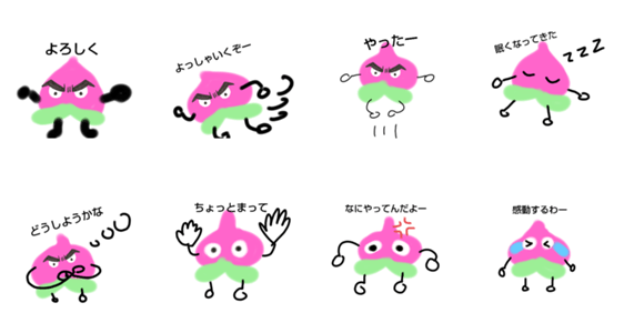 あなたの食べている''もも''のなかにも「ももちゃん」がいるかもしれない。ももって逆さにすると顔と髭みたいだなって思ったのでスタンプにしてみました!